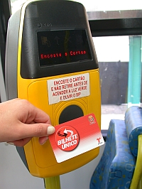 The card is issued at no cost at underground stations; charge them with the minimum amount required in newspaper stands, state-owned betting shops (known as "lotéricas"), supermarkets and other establishments - look for the red, round "Bilhete Único" logo.